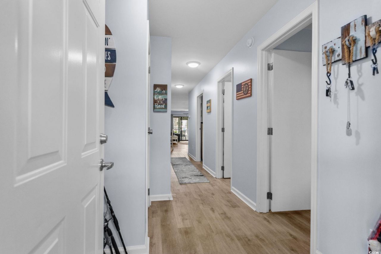 Welcome to this lovely 2 bedroom 2 bath ground floor, end unit condo in Golf Colony Resort of DeerField Plantation in Surfside Beach, SC. Conveniently located approximately half way between North Myrtle Beach and Pawleys Island. Close to shopping, restaurants, night life and the Atlantic Ocean. This condo features LVP flooring, stainless steel appliances, ceiling fans in the living room, both bedrooms and the screened porch that looks out onto and just steps away from the pool. All windows in the unit have been replaced with Vinyl low E glass and PVC Azek trim for low maintenance. The dining area has a custom designed, constructed and installed built-in pantry. The master bath has been totally remodeled and includes a walk-in, glassed shower. The master bedroom has a spacious walk-in closet for storage of all your garment items. Linens and towels can be stored in the hall linen closet just across from the master bedroom. The monthly HOA fee includes outside building maintenance, landscaping, pool maintenance, monthly pest control, water, sewer, garbage collection, cable television and wifi internet connection. HOA insurance for fire, wind, hale, general liability and theft is also included in the monthly payment. This wonderful condominum is perfect for weekend and summer getaways at the beach or for your perminant residence. Have your professional real estate agent show you this fantistic condominium today.
